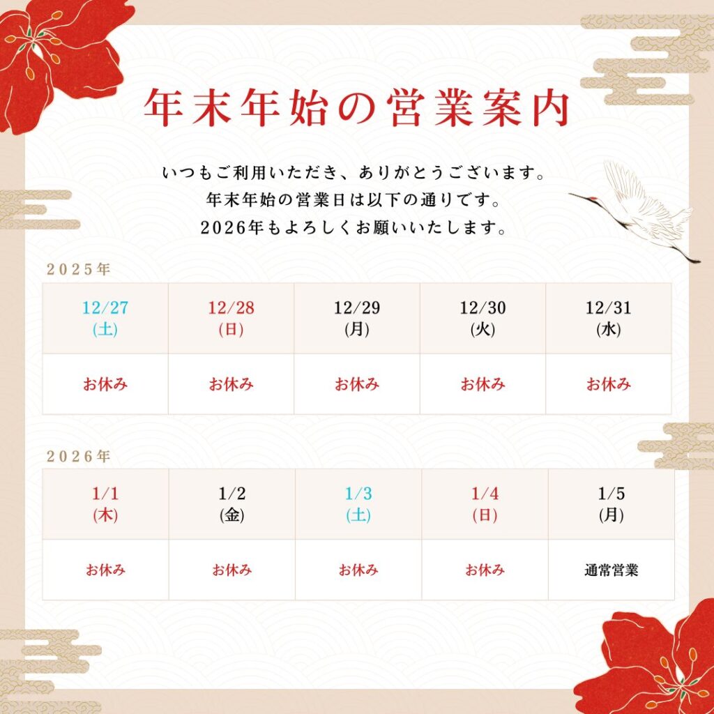年末年始の営業案内平素より「オリジナルスカーフ.com」をご利用いただき誠にありがとうございます。 当社では、下記日程にて年末年始のお休みとさせていただきます。お客様にはご不便を…