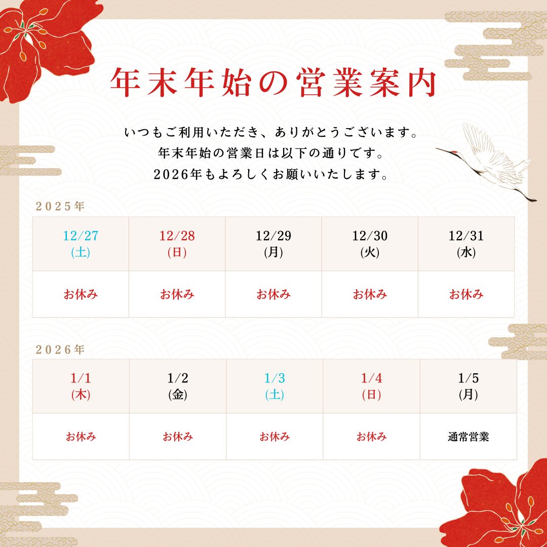 【2026年1月5日(月曜日)】より通常営業いたします。
